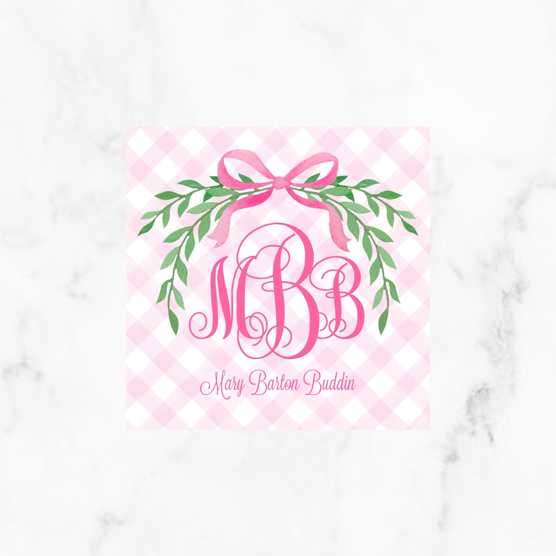 Pink Gingham Greenery Swag With Bow Enclosure Card